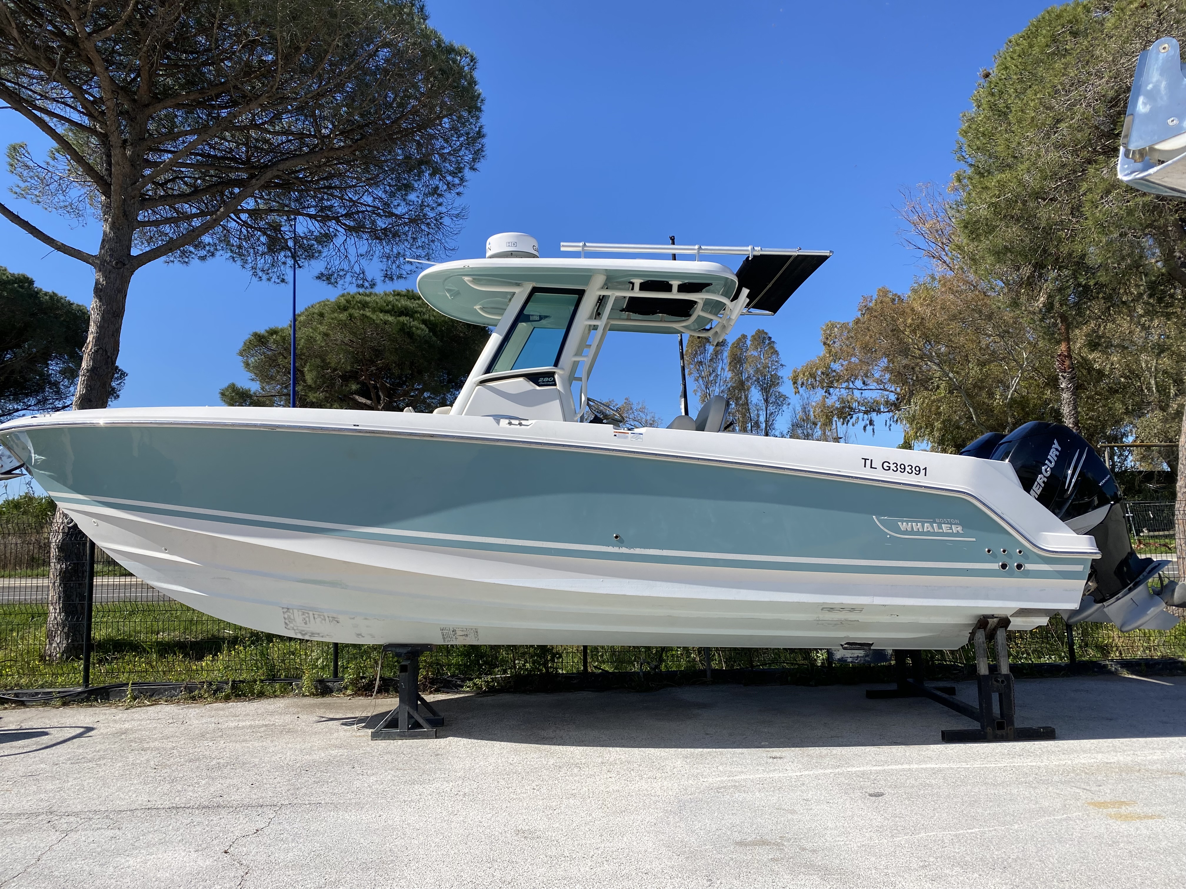 Couleurs : gel coat coque et sous hard-top vert glacier. Tauds noirs. Logos blancs