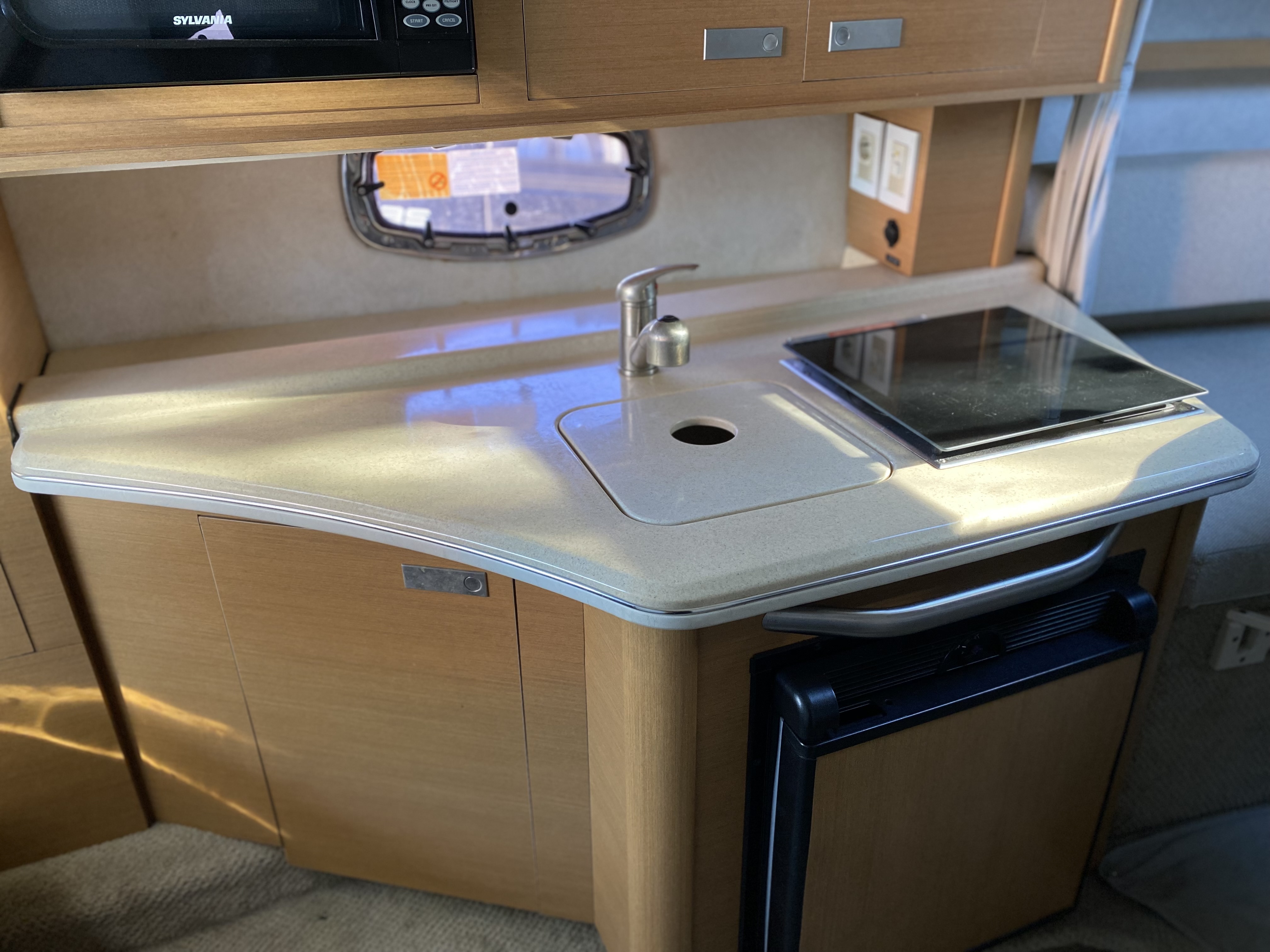 - Cuisine intérieure (réfrigérateur, évier, réchaud, micro-onde)